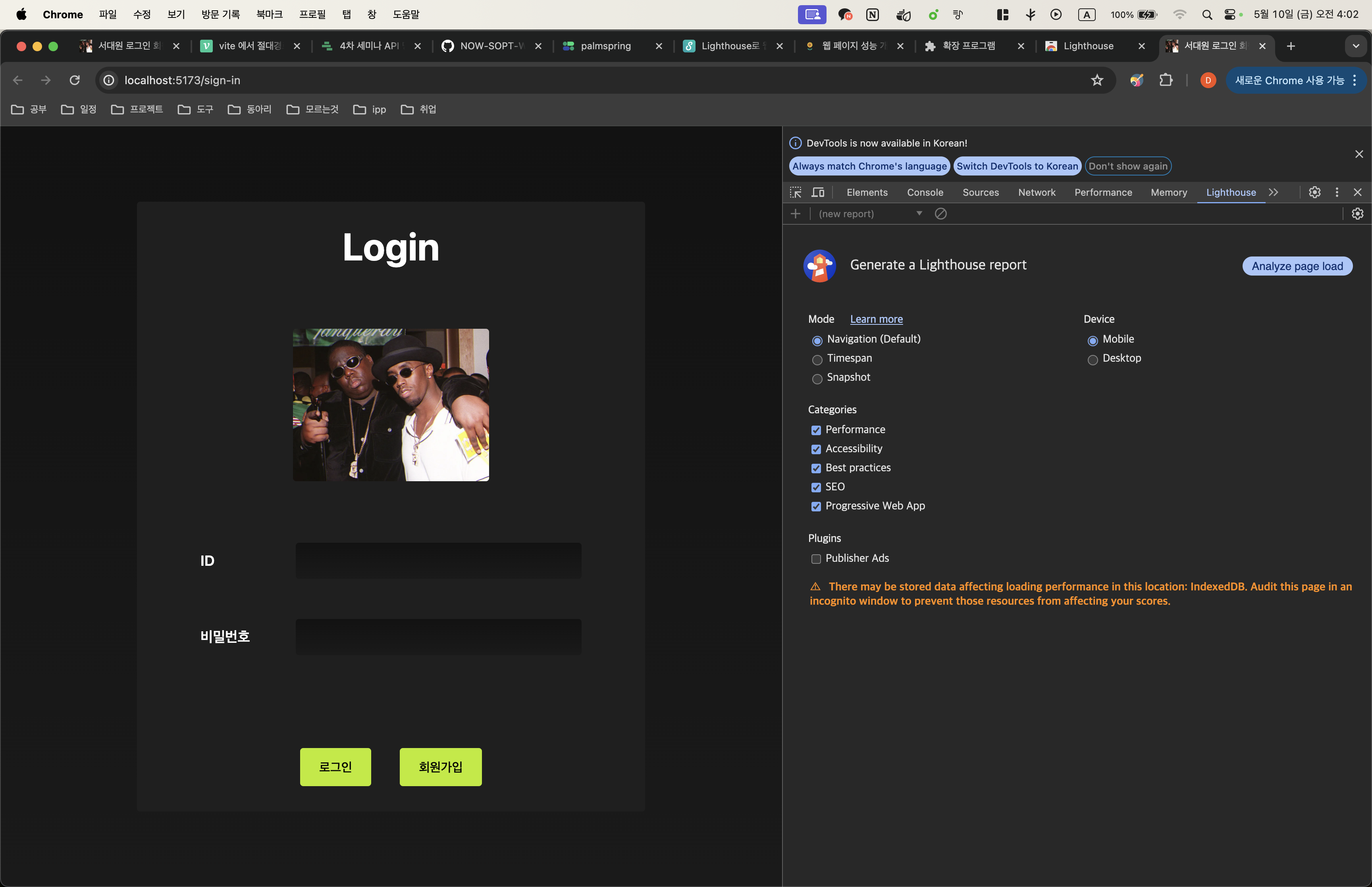 이후 Analyze page load 버튼을 클릭하면 현재 페이지가 자동으로 리로드되며 검사가 진행된다.